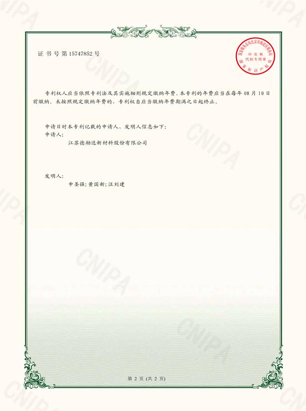 《 一种组合聚醚生产废气处理装置》实用新型专利证书